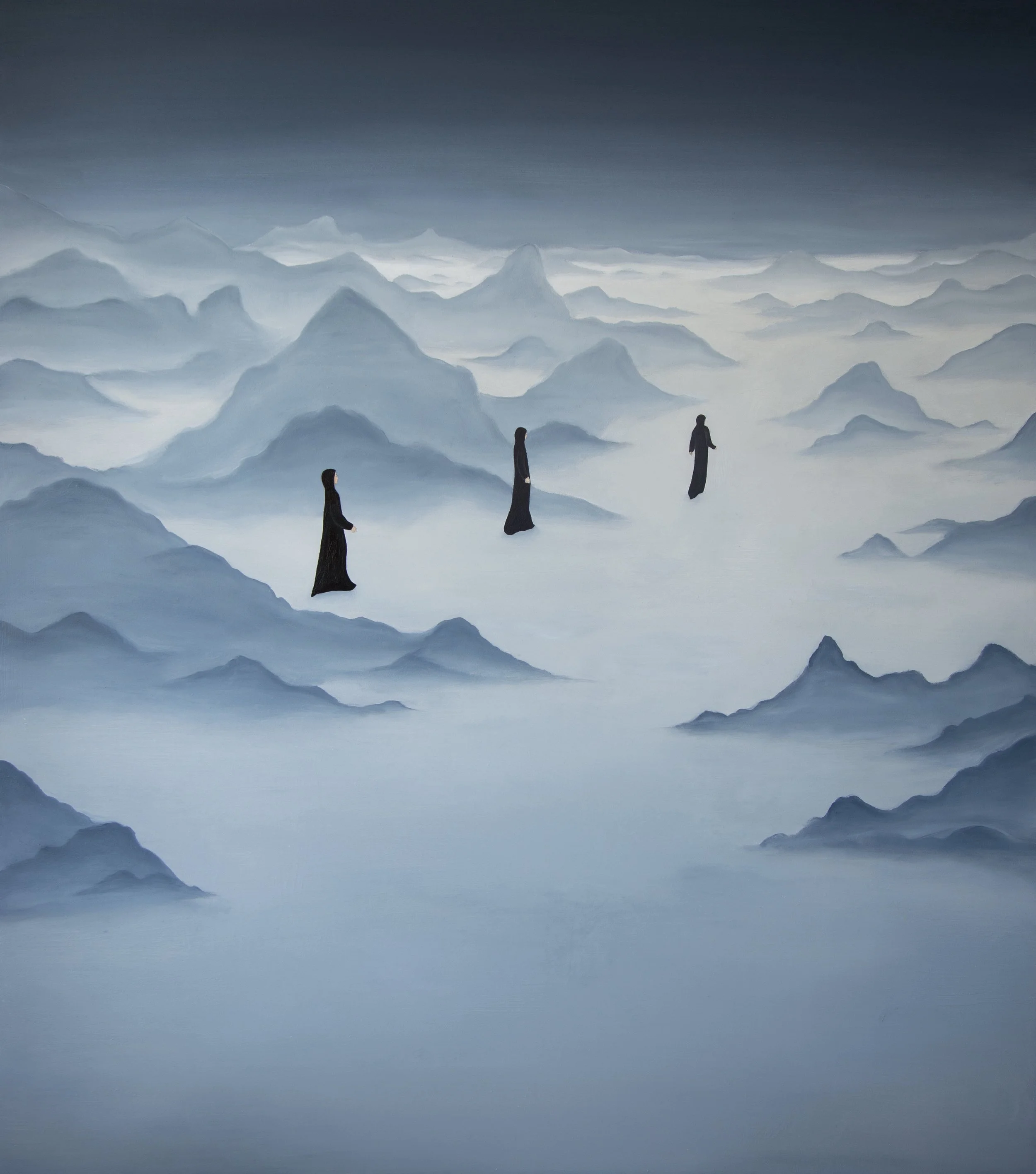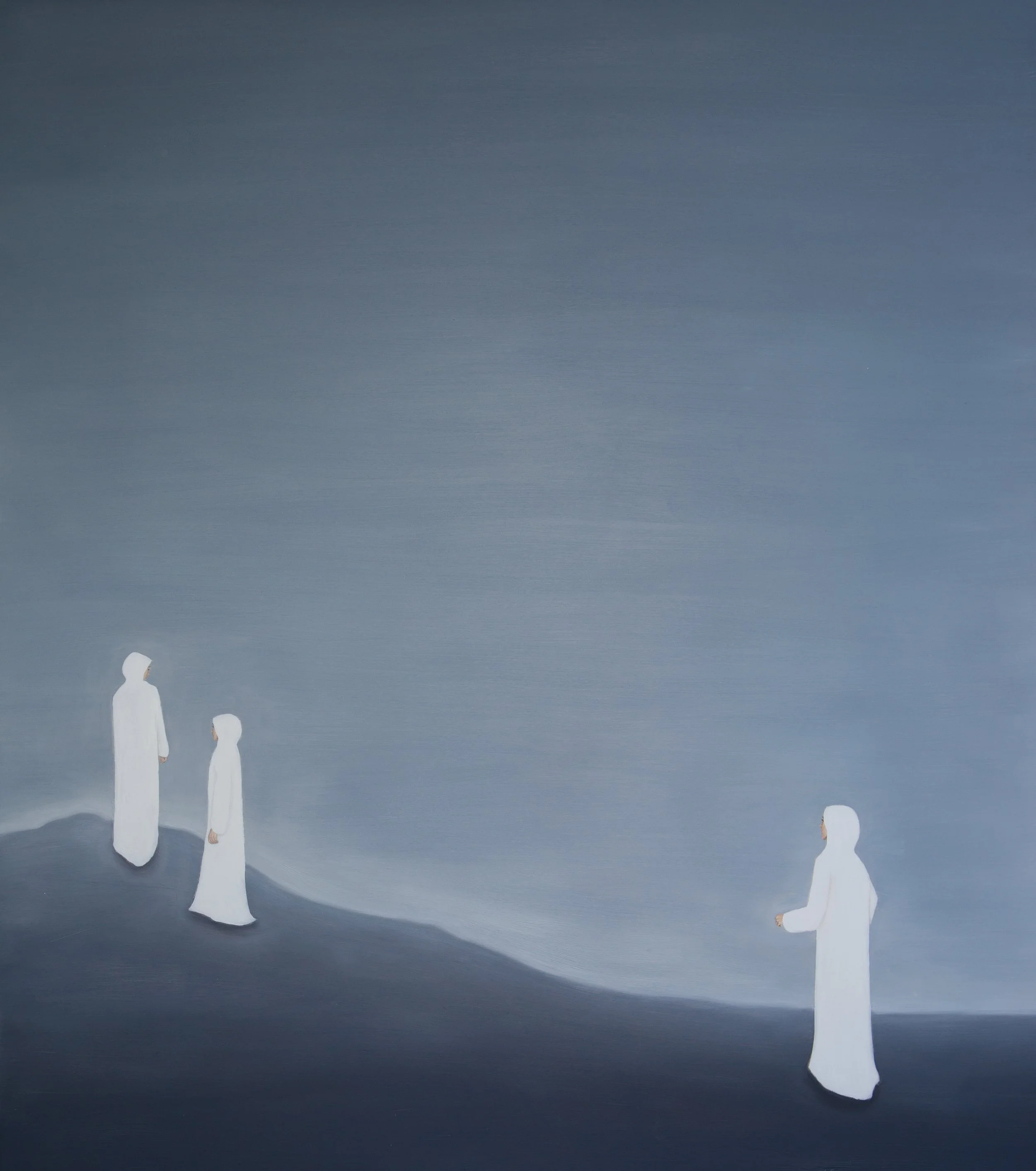 “Breath Meets Body” is a collection of paintings that explore the liminal spaces where invisible, ephemeral realities combine with physical, material points of embodiment. These large oil paintings on wood panel openly look into the unknown through ethereal landscapes that showcase elements of abstraction and realism, rendered in soft, inviting color palettes that are encountered by solid figures. Deep gazes from painted bodies engage viewers’ emotions while also marking the tension that exists when different realities encounter one another.